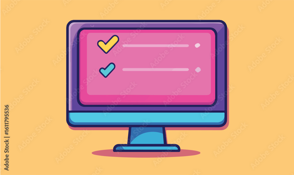 The watermark will not be included on Wall mural.: Modern desktop computer displaying completed tasks with checkmarks on vibrant pink screen checklist