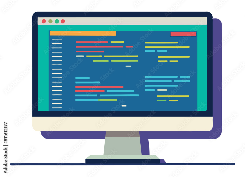 Wall mural modern desktop computer screen displaying code with colorful syntax highlighting. vector illustratio - Wall murals Wall mural modern desktop computer screen displaying code with colorful syntax highlighting. vector illustratio - Wall murals