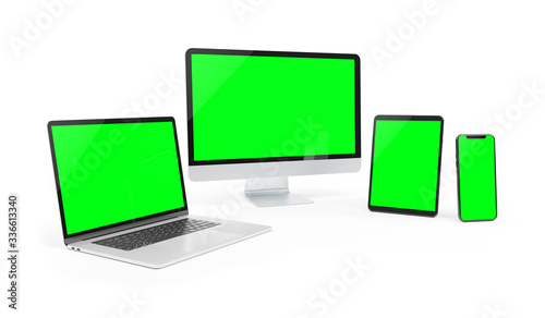 The watermark will not be included on Wall mural.: Modern devices isolated on white background 3d rendering