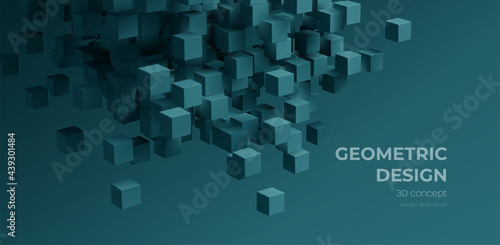 Wall mural modern digital geometric cube abstract background. stylish realistic poster with black 3d cube backg