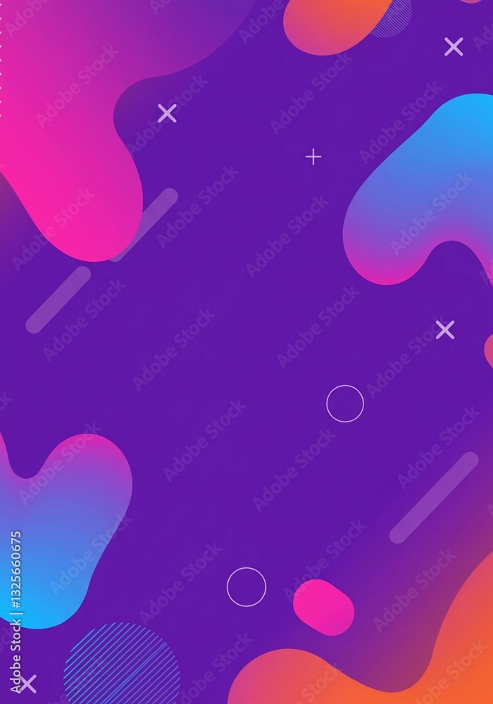 The watermark will not be included on Wall mural.: Modern digital graphic template is captured by a purple blob shape centered on a colorful gradient b