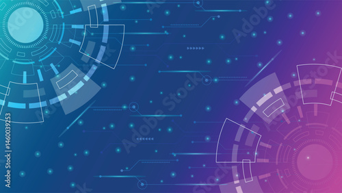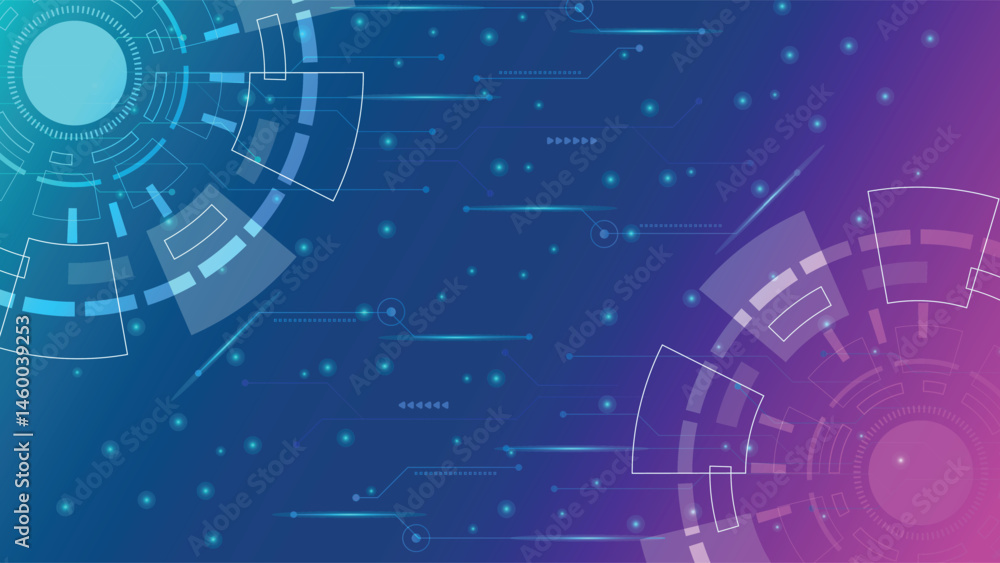 Wall mural : Modern dual color technology background with abstract circular digital design and glowing blue and p