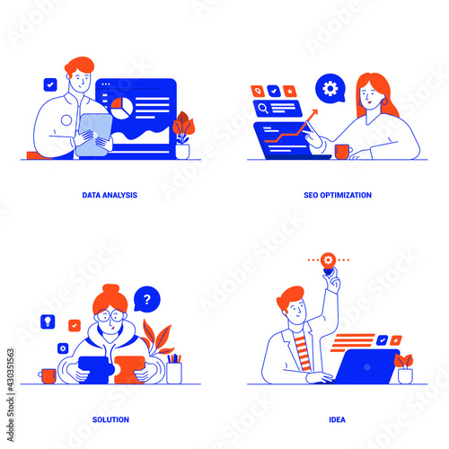 Wall mural modern flat color designed concepts of data analysis, seo optimization, solution and idea. can be us - Wall murals Wall mural modern flat color designed concepts of data analysis, seo optimization, solution and idea. can be us - Wall murals