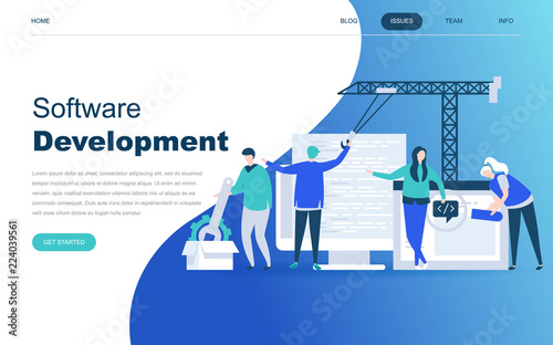 Wall mural : Modern flat design concept of software development for website and mobile website development - landi