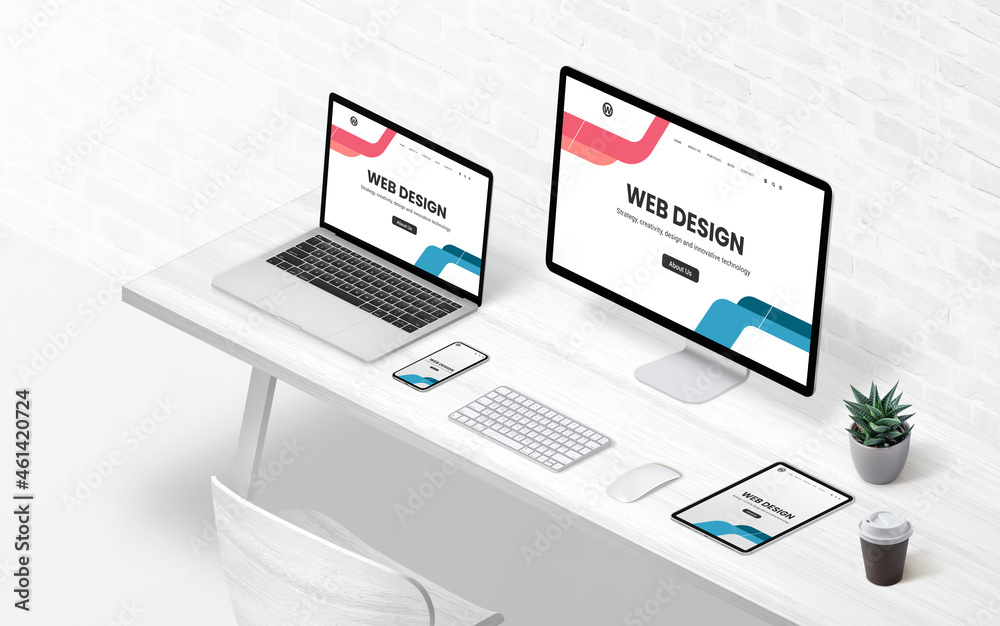Wall mural modern flat design concept page on diferent display devices. isometric concept of creative design st - Wall murals Wall mural modern flat design concept page on diferent display devices. isometric concept of creative design st - Wall murals