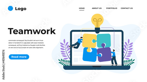 Wall mural : Modern flat design illustration of teamwork - can be used for website and mobile website or landing p