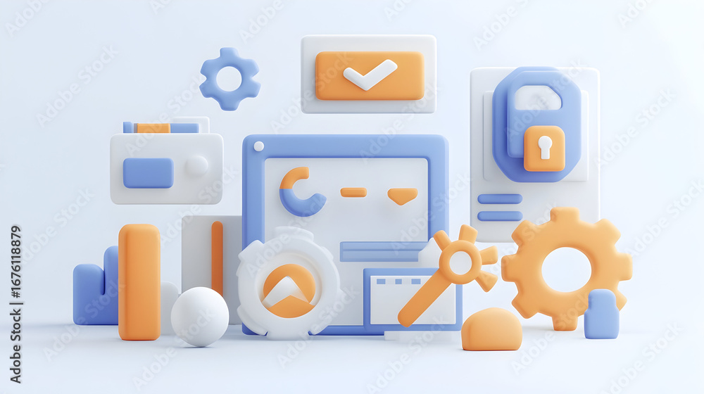 Wall mural modern flat style web development concept with digital interface elements for design projects - Wall murals Wall mural modern flat style web development concept with digital interface elements for design projects - Wall murals