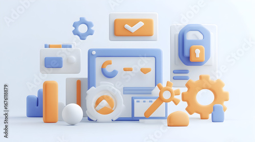 The watermark will not be included on Wall mural.: Modern flat style web development concept with digital interface elements for design projects