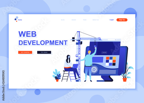 Wall mural : Modern flat web page design template concept of web development decorated people character for websi