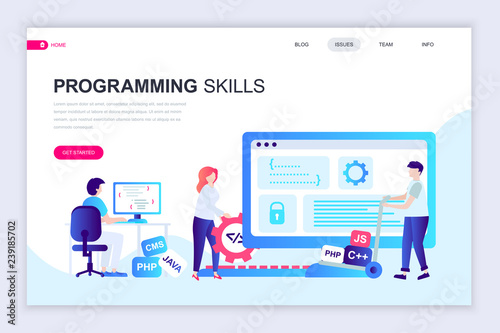 Wall mural : Modern flat web page design template of programming skills decorated people character for website an