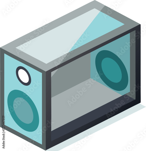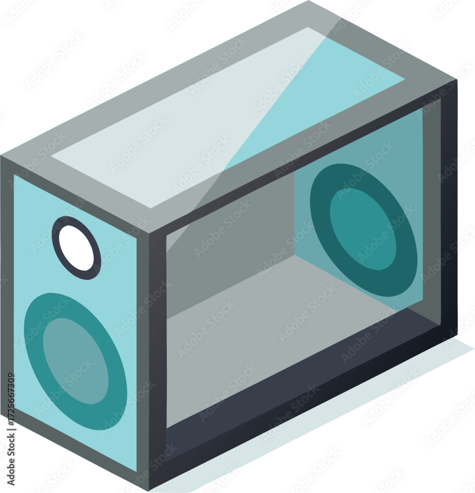 Modern floating bookshelf speaker mockup with transparent glass front for design projectsWall mural