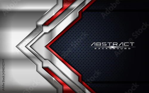 Wall mural modern futuristic background vector on layer red with dark navy and metallic silver with abstract st