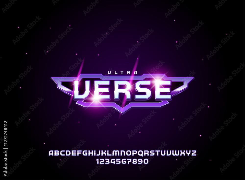 The watermark will not be included on Wall mural.: Modern futuristic tech ultra verse text effect alphabet with tech frame