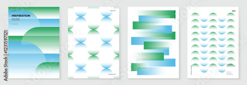 Modern gradient poster background vector set - minimalist cover template with green and blue perspectWall mural