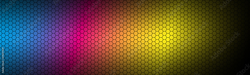 Wall mural : Modern high resolution cmyk geometric header with polygonal grid - abstract colorful metallic hexagon