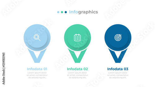 The watermark will not be included on Wall mural.: Modern infographic design with 3 data points - timeline process label with circle and marketing icons