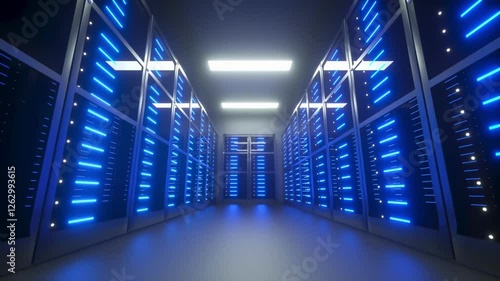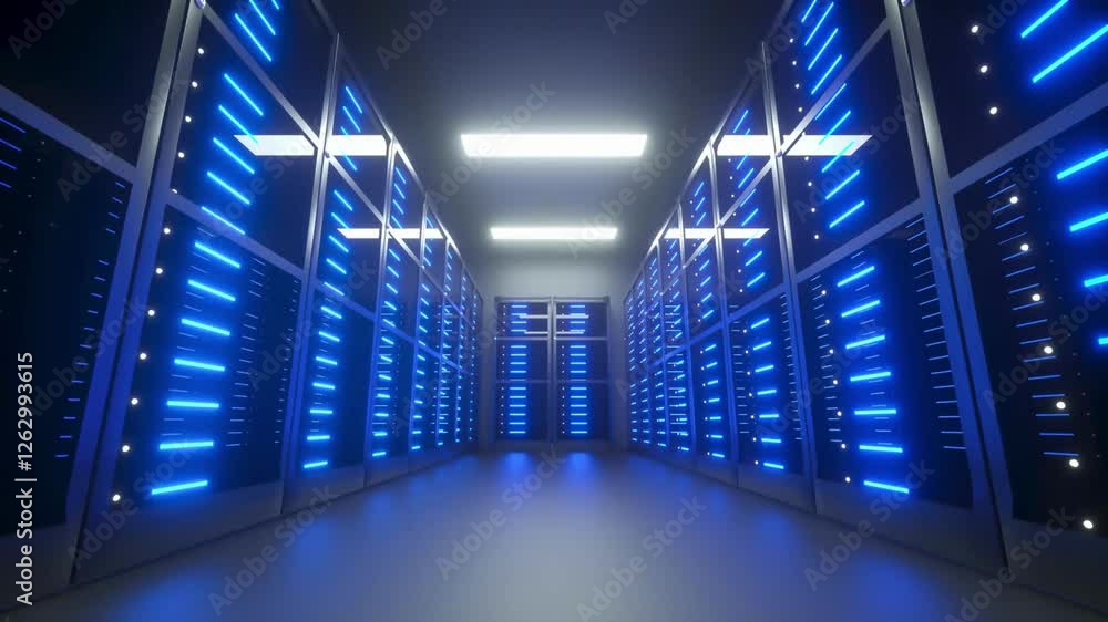Wall mural modern internet server room and data center with supercomputers light seamless animation. 4k uhd - Wall murals Wall mural modern internet server room and data center with supercomputers light seamless animation. 4k uhd - Wall murals