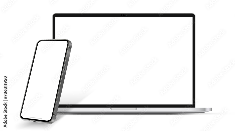 Wall mural modern laptop mockup front view and smartphone mockup high quality isolated on white background. not
