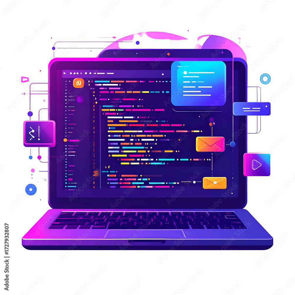Wall mural modern laptop screen with colorful flat design programming and coding icons - Wall murals Wall mural modern laptop screen with colorful flat design programming and coding icons - Wall murals