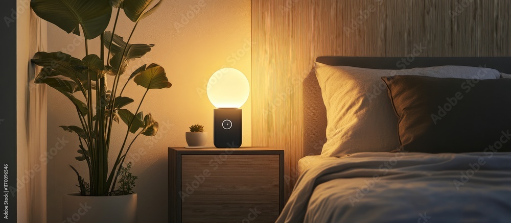 Wall mural : Modern led lamp with motion sensor in stylish bedroom setting for enhanced security and convenience