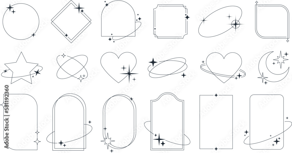 Wall mural modern linear shapes with sparkles, trendy minimalist aesthetic arch line frames. heart frame with s - Wall murals Wall mural modern linear shapes with sparkles, trendy minimalist aesthetic arch line frames. heart frame with s - Wall murals