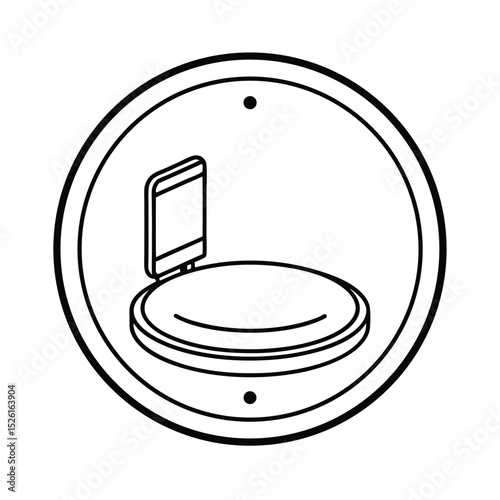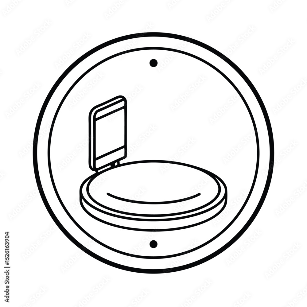 The watermark will not be included on Wall mural.: Modern minimalist line art illustration of a round component with a rectangular element inside a cir