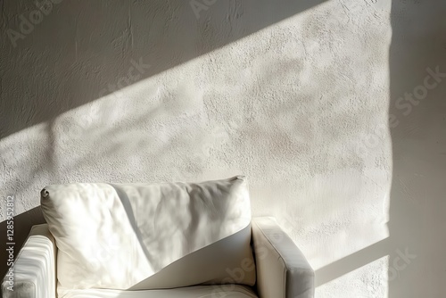 The watermark will not be included on Wall mural.: Modern minimalist white textured wall with geometric shadows creating abstract architectural pattern