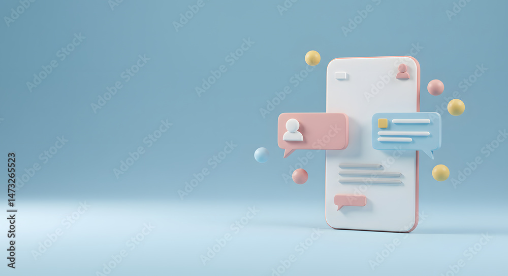 Wall mural modern mobile messaging app interface design 3d render of a smartphone with chat bubbles and user ic - Wall murals Wall mural modern mobile messaging app interface design 3d render of a smartphone with chat bubbles and user ic - Wall murals