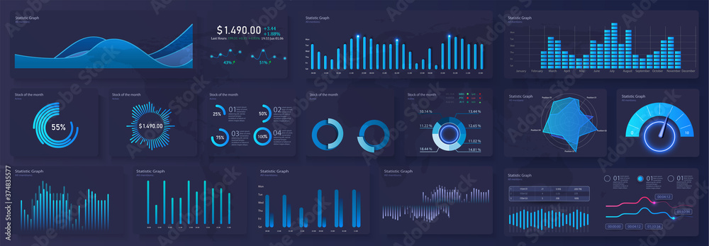 Wall mural modern modern infographic vector template with statistics graphs and finance charts. diagram templat