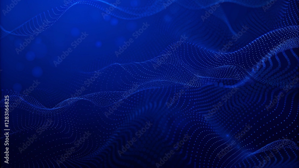 Wall mural modern motion waving dots texture with glowing defocused particles. technology digital wave backgrou