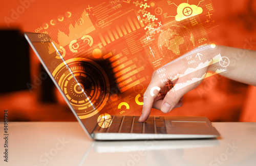 The watermark will not be included on Wall mural.: Modern notebook computer with future technology symbols