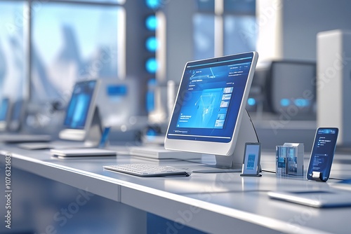 Modern office workspace with computer and technology devicesWall mural