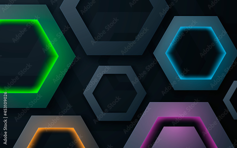 Wall mural modern polygon shape dimension layers background with colorful light - Wall murals Wall mural modern polygon shape dimension layers background with colorful light - Wall murals