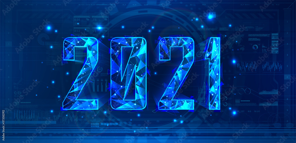 Wall mural modern poster 2021 with numbers polygonal and hud interface elements. tech new year concept. technol