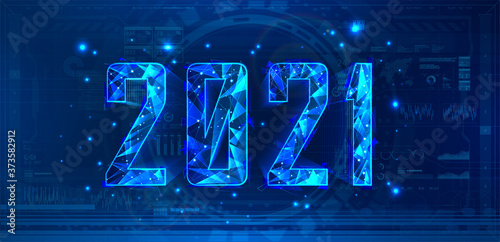 The watermark will not be included on Wall mural.: Modern poster 2021 with numbers polygonal and hud interface elements - tech new year concept - technol