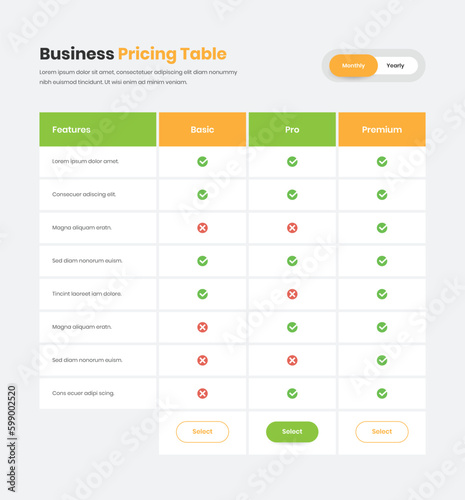 The watermark will not be included on Wall mural.: Modern pricing table template with checklist for website interface design