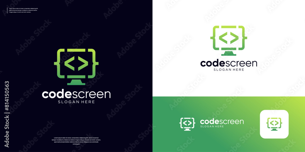The watermark will not be included on Wall mural.: Modern programer code logo icon - monitor computer coding logo design template -
