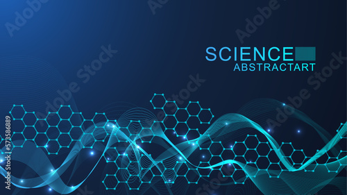 Wall mural modern science background with lines, dots and hexagons. wave flow abstract background. molecular st