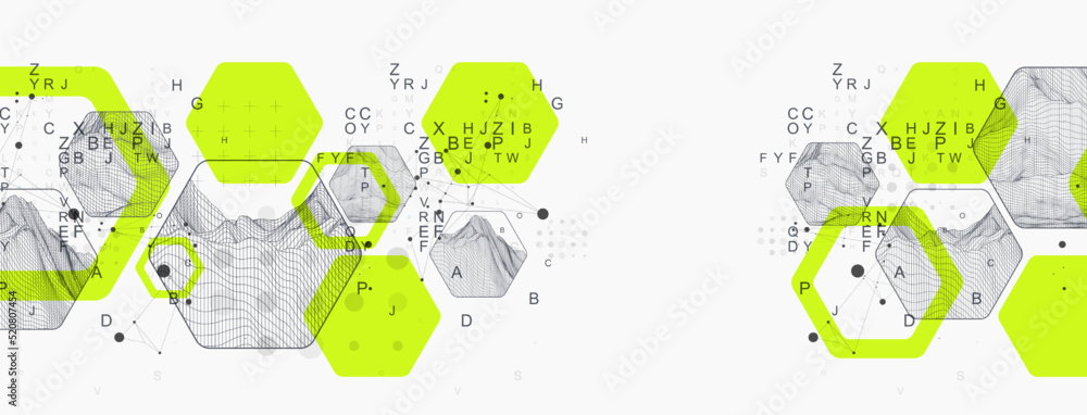Modern science or technology abstract background using hexagonal shapes - wireframe spot surface illuWall mural