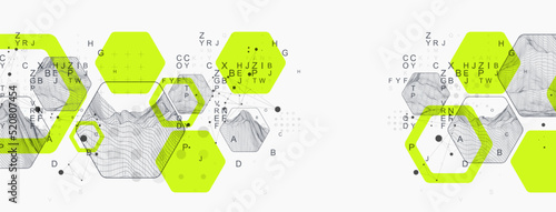 Wall mural modern science or technology abstract background using hexagonal shapes. wireframe spot surface illu