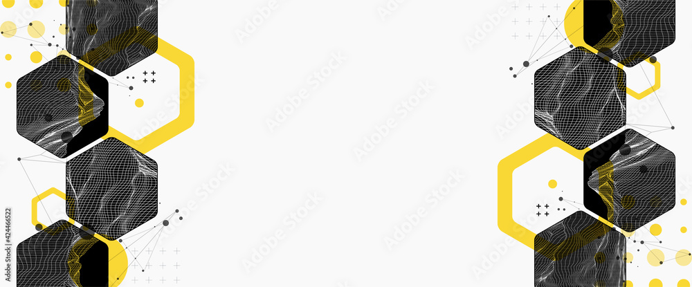 Wall mural modern science or technology abstract background using hexagonal shapes. wireframe spot surface illu