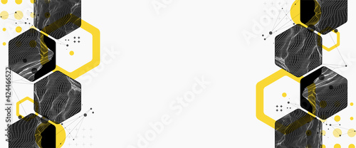 Wall mural : Modern science or technology abstract background using hexagonal shapes - wireframe spot surface illu