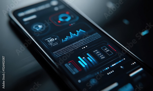 Wall mural modern smartphone app interface sleek design data visualization technology digital screen close up b