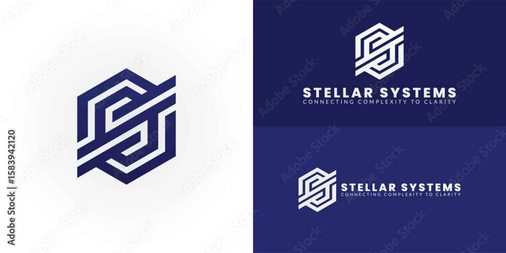 Wall mural modern tech logo featuring a geometric ss monogram. the interconnected lines and hexagonal shapes sy