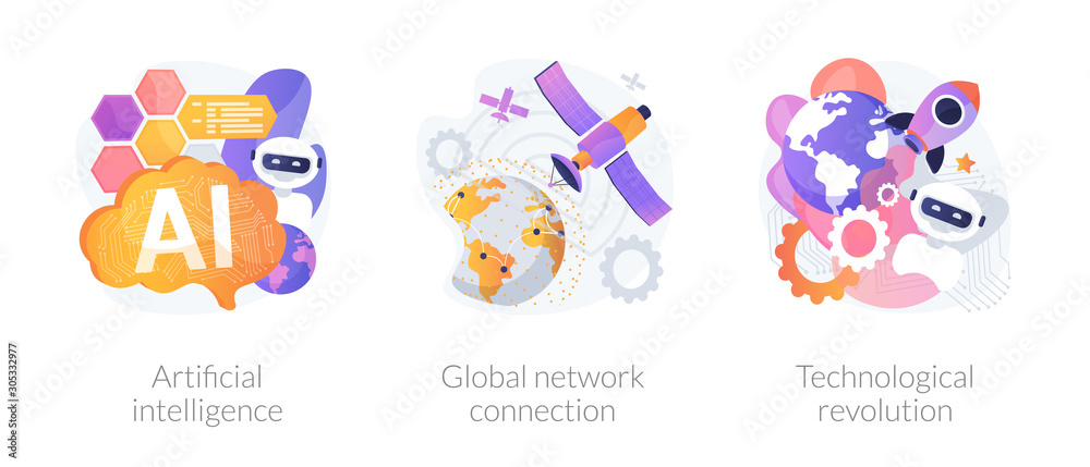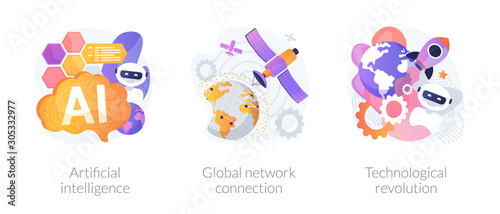 Modern technologies progress metaphors - artificial intelligent, global network connection, technologWall mural