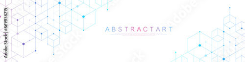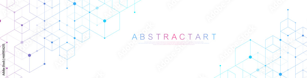 The watermark will not be included on Wall mural.: Modern technology vector illustration with square grid - technology banner template cubes texture - di