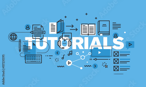 Wall mural : Modern thin line design concept for tutorials website banner - vector illustration concept for online