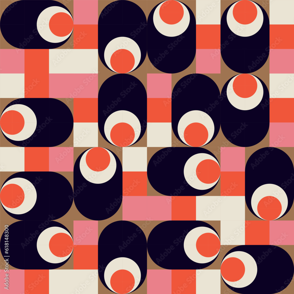 Wall mural modern vector abstract geometric background with circles, rectangles and squares in retro scandinavi