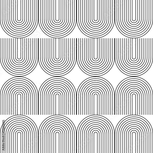 Wall mural modern vector abstract seamless geometric pattern with semicircles and circles in retro style. black
