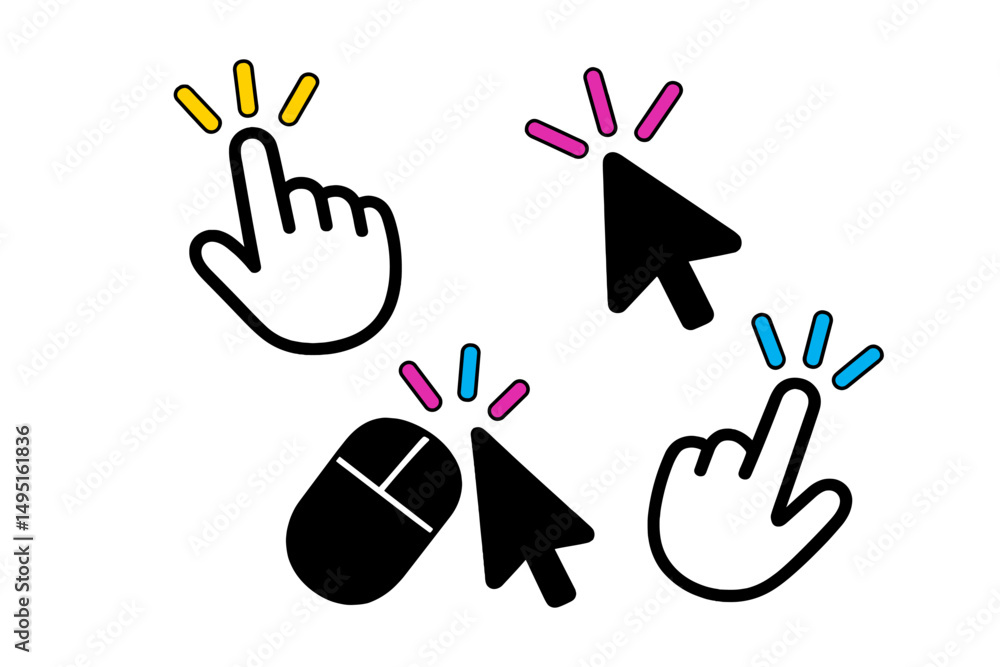 Wall mural modern vector illustration of cursor and hand symbols with colorful accents expressing interaction i